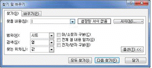 찾을 내용 : 검색할 내용을 입력할 곳으로 와일드 카드 문자를 검색 문자열에 사용할 수 있다.