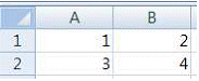 다음 중 아래 워크시트에서 [A1:A2] 영역은 '범위1', [B1:B2] 영역은 '범위2'로 이름이 정의되어 있는 경우 각 수식의 결과로 옳지 않은 것은?