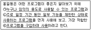 (ㄱ) 셰어웨어, (ㄴ) 프리웨어, (ㄷ) 상용 소프트웨어