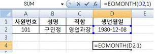 다음 중 아래 워크시트에서 [D4] 셀에 입력한 수식의 실행 결과로 옳은 것은? (단, [D4] 셀에 설정되어 있는 표시형식은‘날짜’임)