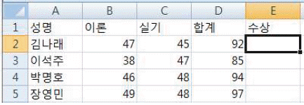 다음 중 아래 워크시트에서 [E2] 셀의 함수식이 '=CHOOSE(RANK(D2, $D$2:$D$5), “천하”, “대한”, “영광”, “기쁨”)' 일 때 결과로 옳은 것은?