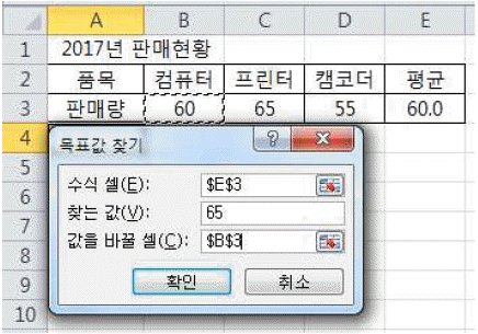 다음 중 아래 그림과 같이 [목표값 찾기]를 실행했을 때 이에 대한 의미로 옳은 것은?