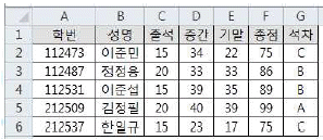 다음 중 아래 시트에서 셀 포인터를 [D5] 셀에 두고 [Home] 키를 누른 경우 셀 포인터의 위치는?