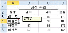 [A4] 셀의 바로 가기 메뉴에서 [메모 숨기기]를 선택 하였다.