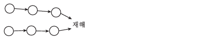 산업재해 발생원인은 여러 가지 요소가 복잡하게 얽혀 발생하는데 다음 중 재해의 발생형태에 있어 연쇄형에 해당하는 것은? (단, ○는 재해발생의 각종 요소를 나타낸 것이다.)