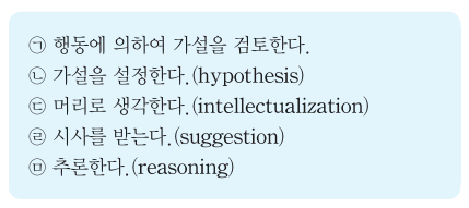 존 듀이(John Dewey)의 5단계 사고 과정을 순서대로 나열한 것은?
