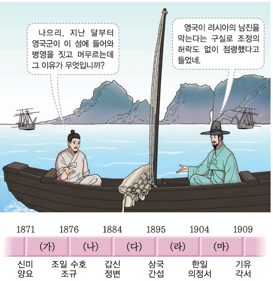 다음 가상 대화의 상황이 나타난 시기를 연표에서 옳게 고른 것은?