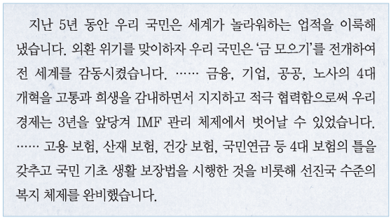 다음 연설문을 발표한 정부 시기에 있었던 사실로 옳은 것은?