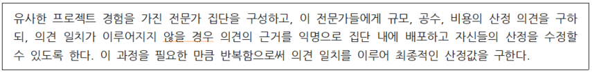 아래에서 설명하는 프로젝트 산정 기법으로 가장 옳은 것은?