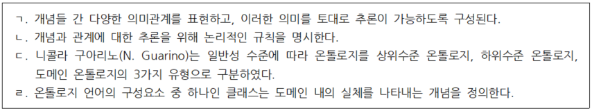 온톨로지에 대한 설명으로 아래에서 옳은 것만을 모두 고르면?