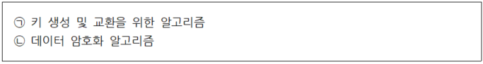 공개키 암호방식의 성능문제와 대칭키 암호방식의 키 관리 문제를 상호 보완하여 하이브리드 암호화 환경을 구축하고자 한다. 아래의 ㉠, ㉡에 해당하는 알고리즘으로 올바르게 짝지어진 것은?