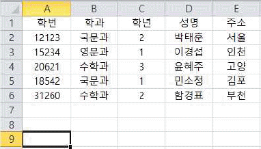 다음 중 아래 시트의 [A9] 셀에 수식 '=OFFSET(B3,-1,2)'을 입력한 경우 결과값은?