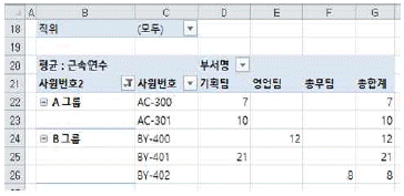 다음 중 아래의 피벗 테이블에 대한 설명으로 옳지 않은 것은?