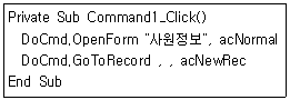 [사원정보] 폼이 열리고, 첫 번째 레코드의 가장 왼쪽 컨트롤에 포커스가 표시된다.