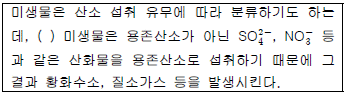용존산소와 관련하여 폐수처리 시 이용되는 미생물의 구분 중 다음 ( ) 안에 가장 적합한 것은?