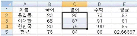 다음 중 아래 워크시트에서 [C2:C4] 영역을 선택하여 작업한 결과가 다른 것은?