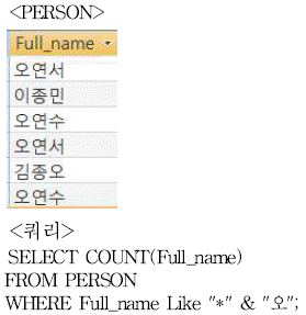 다음 중 아래 < PERSON > 테이블에 대한 쿼리의 실행 결과 값은?