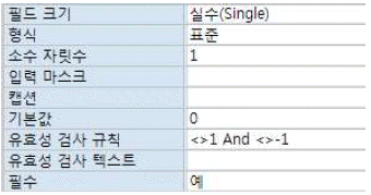 다음 중 아래와 같이 필드 속성을 설정한 경우 입력 값에 따른 결과가 옳지 않은 것은?