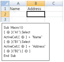 아래는 'Macro1' 매크로의 실행 결과와 VBA 코드이다. 다음 중 VBA 코드의 ⓐ, ⓑ, ⓒ에 해당하는 내용이 순서대로 나열된 것은?