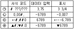다음 중 서식 코드를 셀의 사용자 지정 표시 형식으로 설정한 경우 입력 데이터와 표시 결과가 옳지 않은 것은?(단, 열 너비는 표준 열 너비이다.)