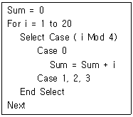 다음 중 아래의 프로그램을 수행한 후 변수 Sum의 값으로 옳은 것은?