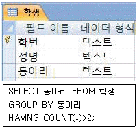 아래는 [학생] 테이블의 디자인 보기와 [학생] 테이블을 이용한 SQL문이다. 다음 중 아래 SQL문의 실행 결과에 대한 설명으로 옳은 것은?
