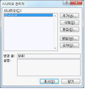 다음 중 아래 [시나리오 관리자] 대화상자의 각 버튼에 대한 설명으로 옳지 않은 것은?