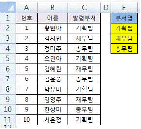 아래 그림과 같이 발령부서[C2:C11]는 부서명[E2:E4]의 데이터 값을 번호[A2:A11]를 기준으로 순서대로 반복하여 배정하고자 한다. 다음 중 [C2] 셀에 입력할 수식으로 옳은 것은?