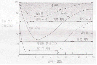 아래 그래프는 자정단계에 따른 용존산소의 변화량을 타나낸 것이다. 이에 관한 설명으로 옳지 않은 것은?