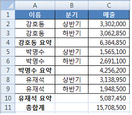 다음 중 부분합 실행 결과에 대한 설명으로 옳지 않은 것은?