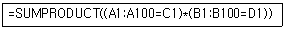 =COUNTIFS(A1:A100,C1,B1:B100,D1)