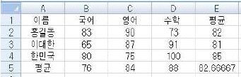 다음 중 아래 시트를 이용하여 수식을 실행했을 때 표시 되는 결과 값으로 옳은 것은?