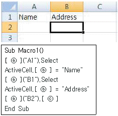 다음 그림은 'Macro1' 매크로의 실행 결과와 VBA 코드이다. 다음 중 VBA 코드의 ⓐ, ⓑ, ⓒ 에 들어갈 내용이 순서대로 나열된 것은?