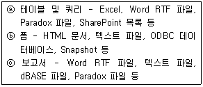 아래 보기에서 개체별로 내보내기 할 수 있는 형식의 연결이 옳은 것만 나열한 것은?