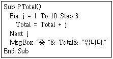 다음 프로시저가 실행된 후 Total 값으로 옳은 것은?