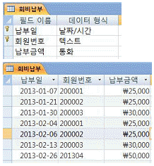 다음과 같은 [회비납부] 테이블을 이용하여 월별로 납부금액의 합계를 계산하는 SQL 문으로 옳은 것은?