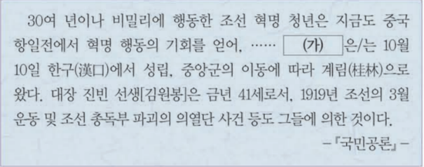 중국 관내(關內)에서 결성된 최초의 한인 무장부대였다.