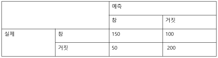 혼동행렬을 계산한 값으로 옳지 않은 것을 고르시오.