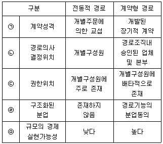 전통적 경로와 계약형 경로의 특징을 비교한 것으로 옳지 않은 것은?