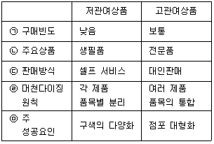 다음 표의 관여도별 소비자 구매특징과 유통전략에 대한 내용으로 옳은 것을 모두 고르면?