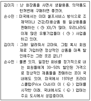 다음 두 사람의 대화에서 ( ㉠ ), ( ㉡ ) 안에 들어갈 소매상 유형으로 옳은 것은?