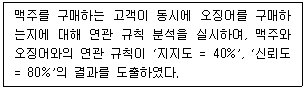 데이터마이닝 기법의 하나인 연관 규칙 분석에 대한 사례이다. 이 사례의 결과가 의미하는 내용으로 가장 옳은 것은?