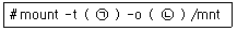 다음은 윈도우의 파일 시스템인 FAT-32를 읽기 모드로 /mnt 디렉터리에 마운트 할 때 마운트하는 과정이다. ( 괄호 ) 안에 들어갈 내용으로 알맞은 것은?