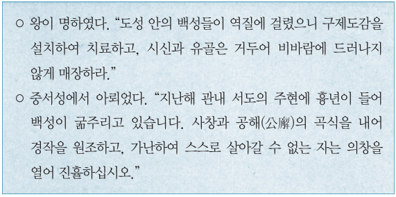 유랑민을 구휼하는 활인서를 두었다.