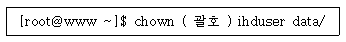 다음은 data 디렉터리의 파일 및 하위디렉터리를 포함하여 소유권을 ihduser로 변경하는 과정이다. ( 괄호 ) 안에 들어갈 내용으로 알맞은 것은?