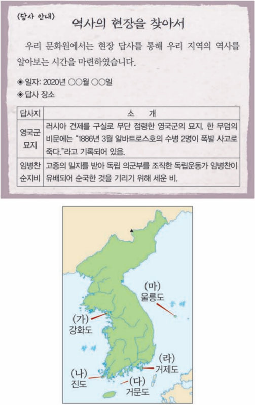 다음 답사가 이루어진 지역을 지도에서 옳게 찾은 것은?