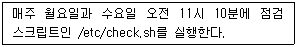 다음 설명과 같이 cron을 설정할 때의 날짜 형식으로 알맞은 것은?