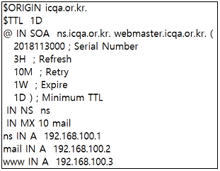 ZONE 파일의 영역명은 ′icqa.or.kr′ 이다.
