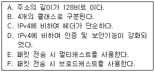 아래 내용에서 IPv6의 일반적인 특징만을 나열한 것은?