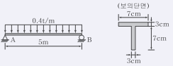 그림과 같은 단순보의 단면에서 최대 전단응력을 구한 값은?